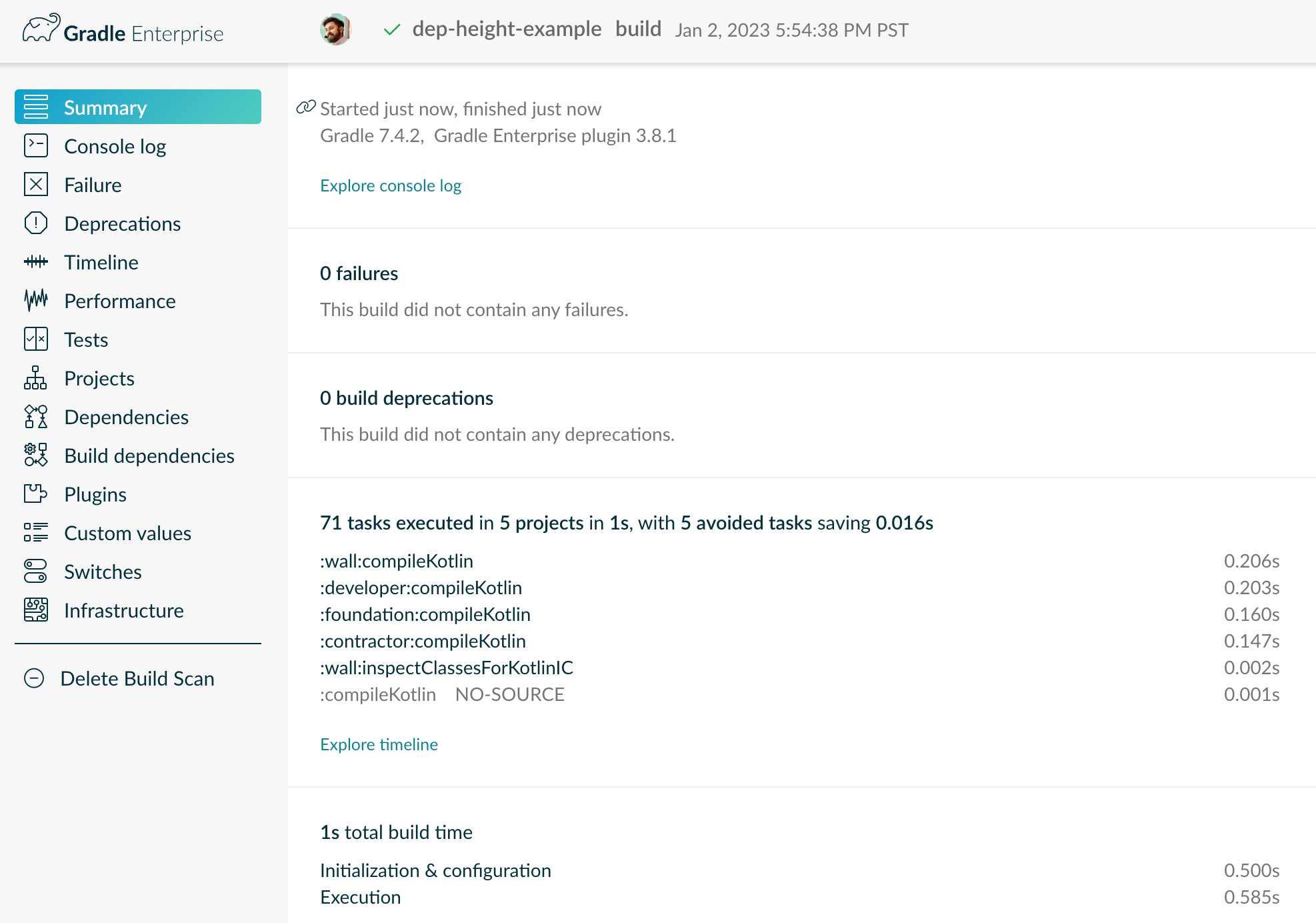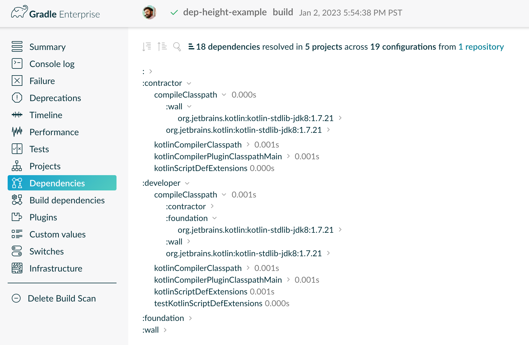 Gradle build scans are like an X-ray for your Gradle and Maven builds.