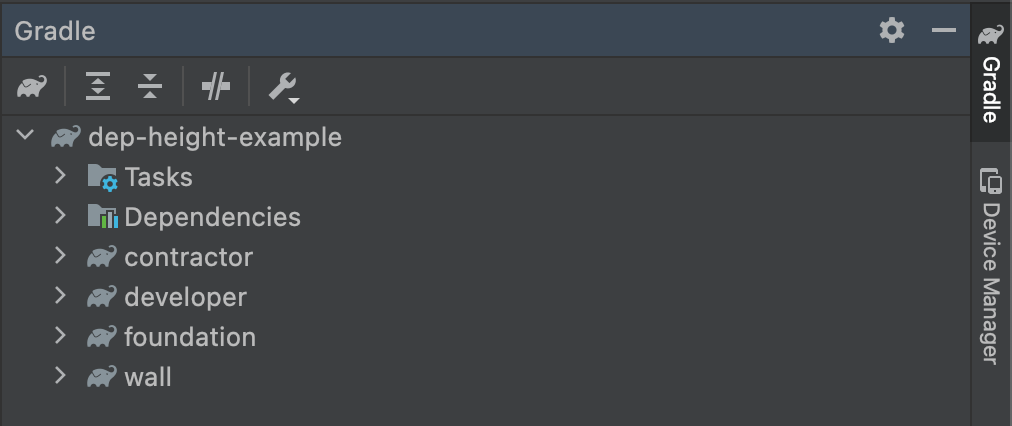 Then expand:yourmodule->Tasks->android. Finally, double click onandroidDependenciesto execute the task. - For a Java or Kotlin Project